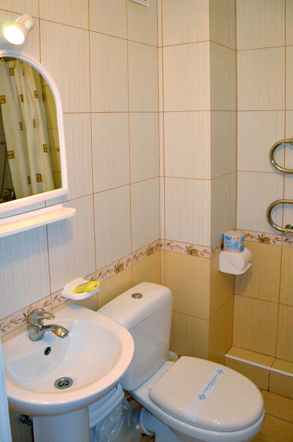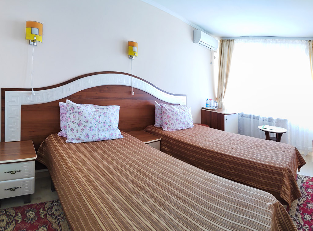Площадь номера - 16 кв.м. 2 осн. места. 1 доп. место. Балкон. Мебель: вешалка, зеркало, кровати односпальные, прикроватные тумбочки, столик журнальный, стул, шкаф. Оборудование: кондиционер, телевизор, телефон, холодильник. Санузел: с душем, туалетные принадлежности, фен. Сервис: смена полотенец (1 раз в 3 дня), смена постельного белья (1 раз в 5 дней), уборка номера (ежедневно), услуги внутренней телефонной связи.